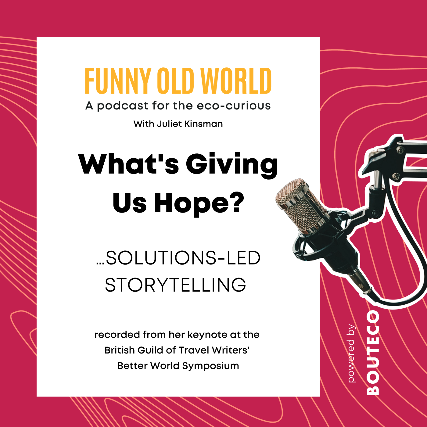 Keywords: sustainable travel podcast · solutions-led storytelling · regenerative travel · travel journalism · sustainability communications · impact reporting · green travel · eco travel · sustainable tourism · Condé Nast Traveller · Bouteco · Funny Old World